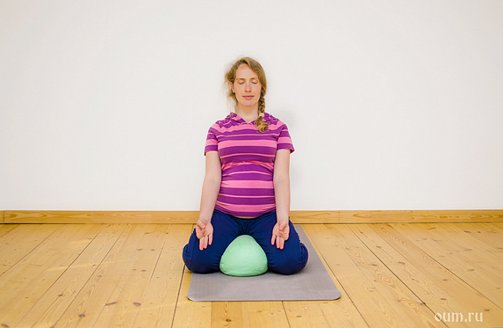 Как видите, во время беременности большинство упражнений сидя выполняют на опоре. Это наиболее безопасный и комфортный вариант, помогающий снять излишнюю нагрузку в спине и не зажимать область живота. Поэтому рекомендую всем беременным обзавестись таким «пропсом», как болстер (специальный валик, набитый ватой или гречишной лузгой), который также можно использовать в асанах лёжа, перевёрнутых асанах и в асанах на раскрытие грудной клетки. Кстати, о грудной клетке — не забывайте во всех асанах обращать внимание на неё. Постоянно раскрывайте грудь, усиливая мощность дыхания и развивая выносливость — это ослабит общее напряжение в теле.