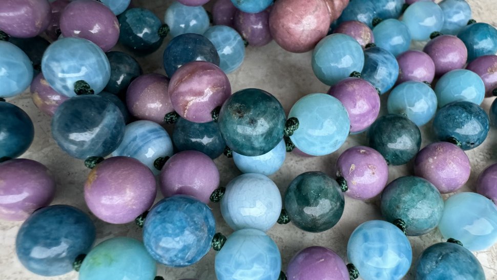 Представляем вам наши уникальные чётки "Свадхарма", созданные с использованием эксклюзивного микса натуральных полудрагоценных камней. В каждой бусине (всего их 108), тщательно отобранной и обработанной, заложена сила и энергия природы.