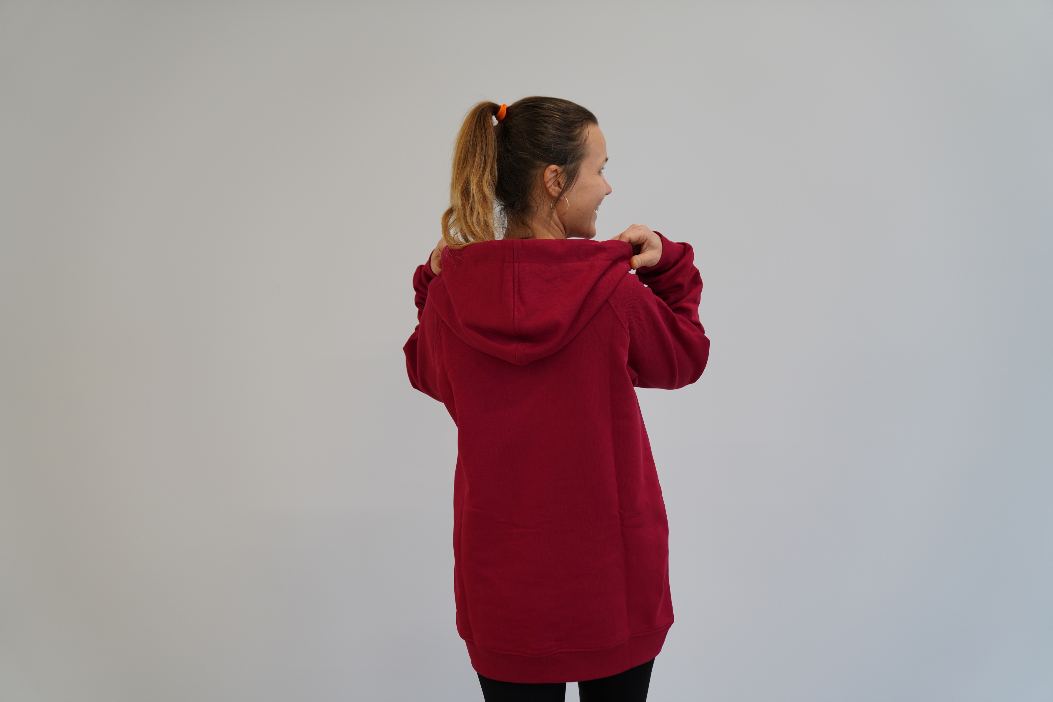 Толстовка с длинным рукавом и капюшоном.