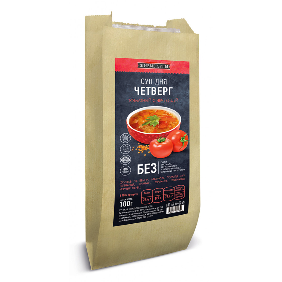 Из 100г сухой смеси получается 2 л супа.