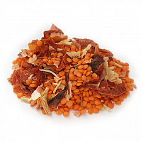 - Чечевица, морковь, томаты, лук репчатый, тимьян, орегано, кориандр, черный перец.
