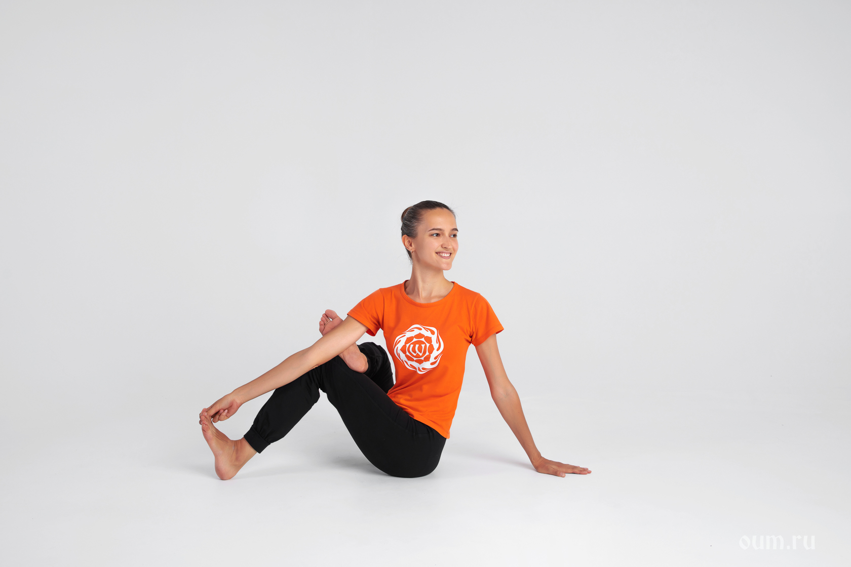 - перенесите лодыжку правой ноги на колено левой ноги так, чтобы стопа выступала за колено, убедитесь, что ваша спина продолжает сохранять ровное положение и обе ягодицы располагаются на коврике;