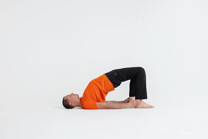 - Стопами упритесь в коврик, держите их параллельно друг другу на ширине таза.