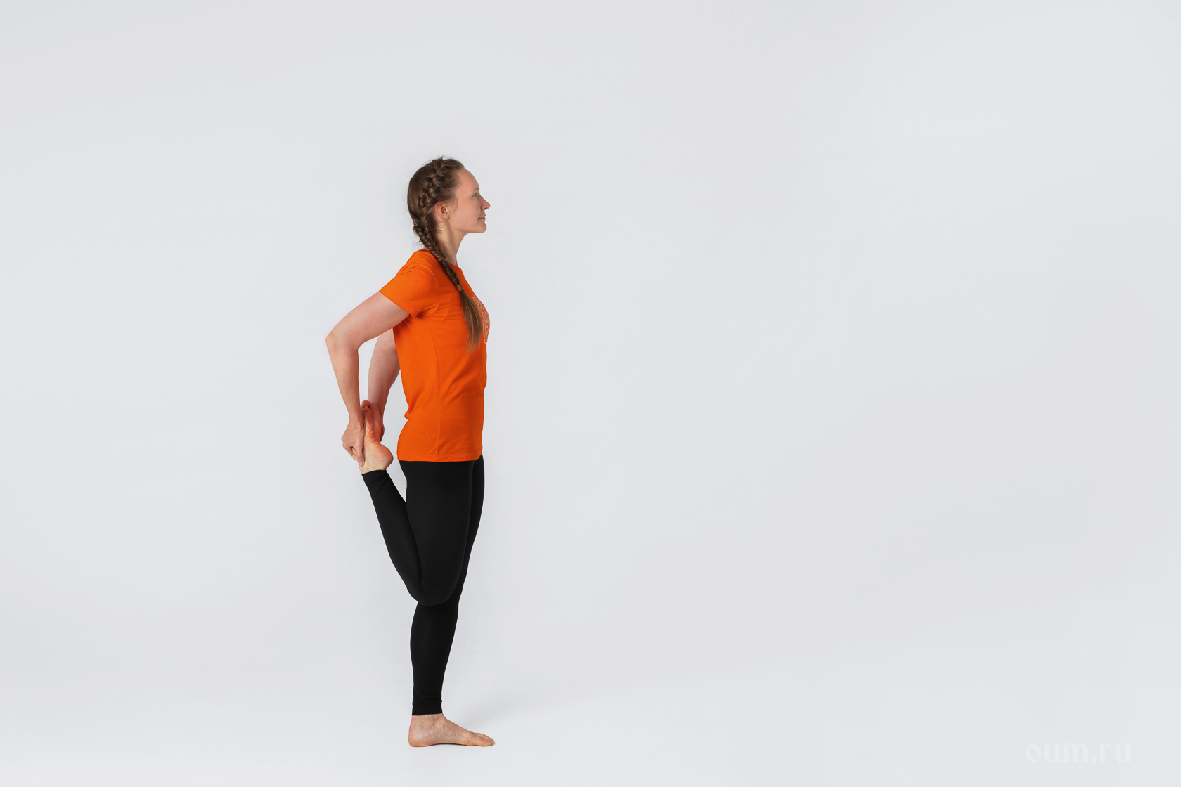 Перевод с санскрита: «Поза лягушки на одну ногу в положении стоя с захватом стопы обеими руками»