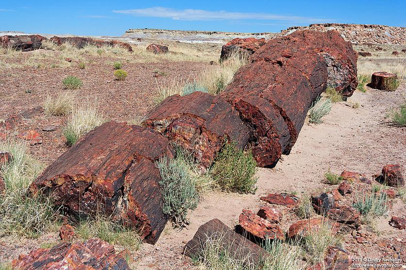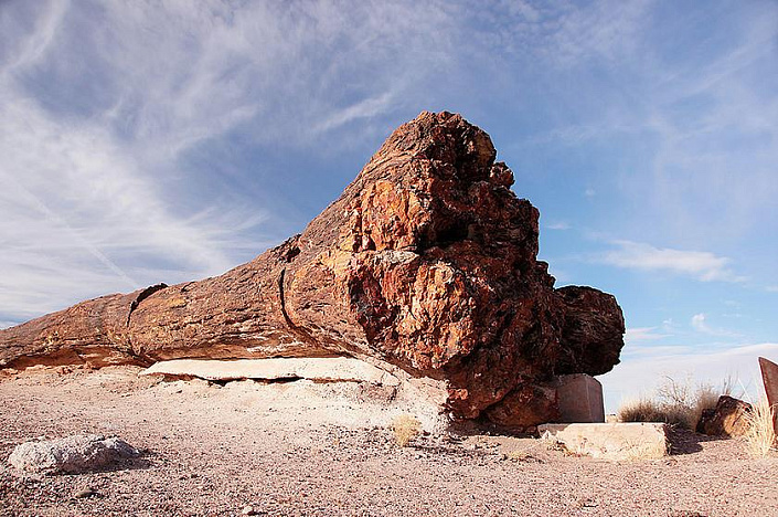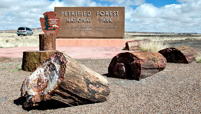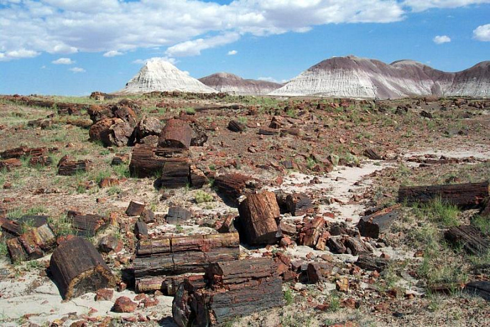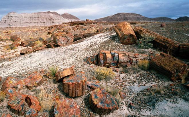 Выходит, что эти старые гиганты на фото не имеют отношения к кремниевой эре. Так куда же подевались кремниевые деревья или хоть бы их остатки? Вы не поверите, но они нашлись. И не где-нибудь, а всё в той же Северной Америке. А если быть точным – в Аризоне. Именно там работает музей под открытым небом – Petrified forest national park. Представляющий собой пустыню с разбросанными по ней окаменевшими деревьями. Сегодня посетить этой музей может любой желающий. В этом парке окаменелости не простые – они уникальны. И если черепахи и лягушки превращались в серо-белые булыжники, то здешние деревья превратились в полудрагоценные камни.