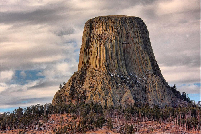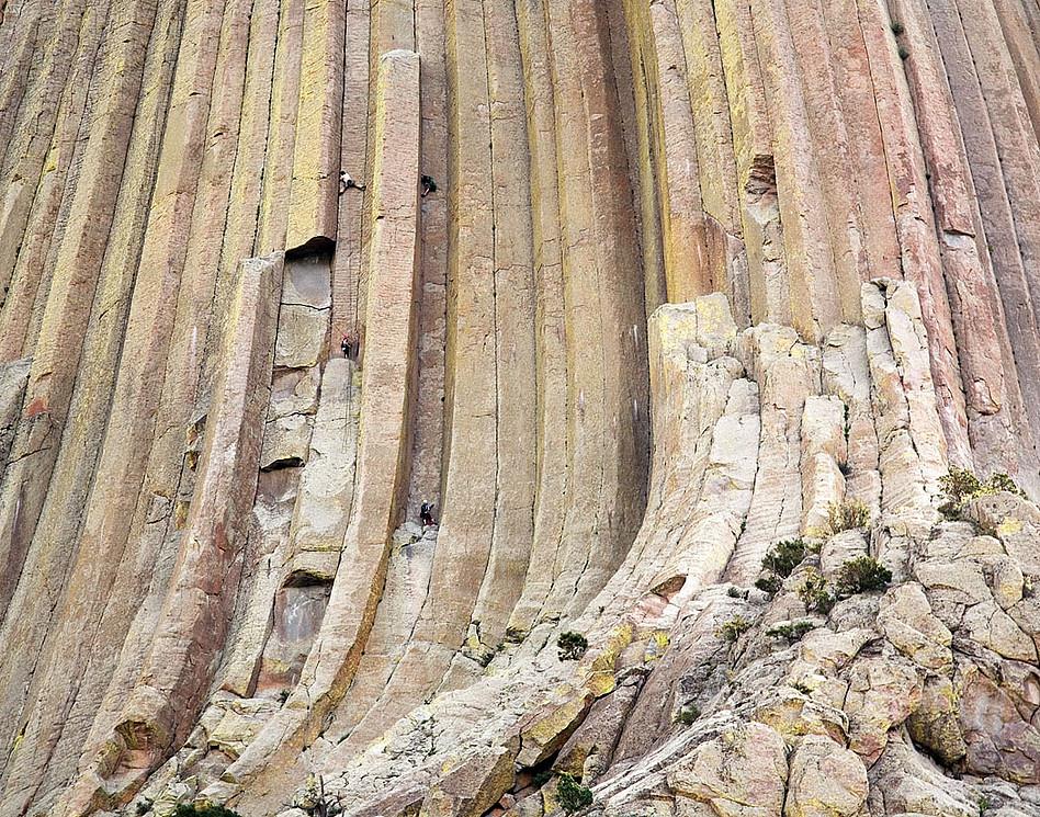 Теперь посмотрим на эту гору вблизи. И ещё раз прочитаем строки из Википедии: «Башня Дьявола образовалась из магматического расплава, который поднялся из глубин Земли и застыл в виде изящных колонн». Надо же какой умный магматический расплав. Просто взял и застыл в виде идеальных шестиугольных столбцов, выросших на 300 метров вверх.