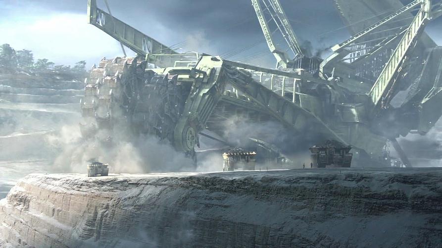 На фото Bagger 288 — самый большой роторный экскаватор в мире на сегодняшний день. Представьте, если такая техника сегодня есть у нас, каков был уровень техники пришельцев, которые управлялись с деревьями по 100 км в высоту. А вот так этот роторный экскаватор работает. Он ползёт на гусеницах параллельно карьерной стене. Огромный диск с ковшами выскребает породу, оставляя вогнутую стену из камня.