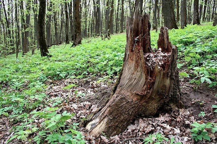 Правильно, чтобы отвести внимание от настоящих артефактов — гигантских пней, что на заднем фоне. И вот здесь возникает вопрос… Почему остались нетронутыми пни? Ответа на этот вопрос, к сожалению, нет. Но есть предположение. Возможно, что пни являются своеобразной пробкой для неких энергетических потоков бьющих из Земли, и которые по каким-то причинам нельзя вскрывать. Взглянем на фото.