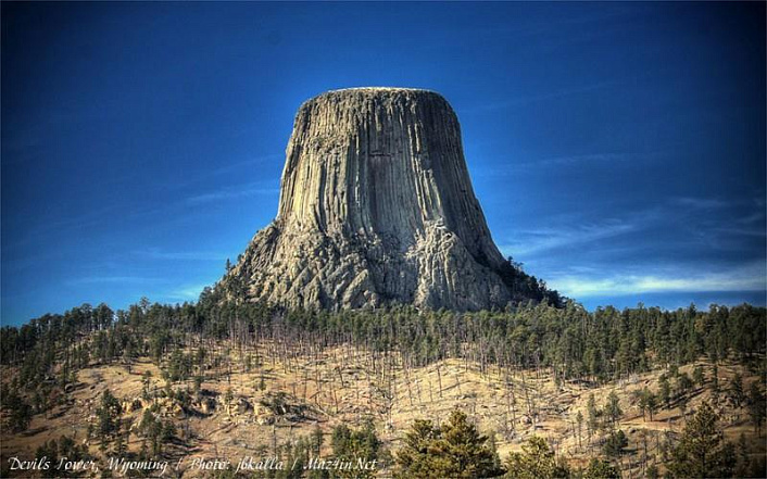 Перед нами гора «Башня Дьявола» в штате Вайоминг, США. Это столовая гора, образовавшаяся из магматического расплава, который поднялся из глубин земли и застыл, примерно 200 млн. лет назад. Так говорится в Википедии. Однако есть и другое мнение. И согласно нему – это не гора, а пень от гигантского древа кремниевой формы жизни.