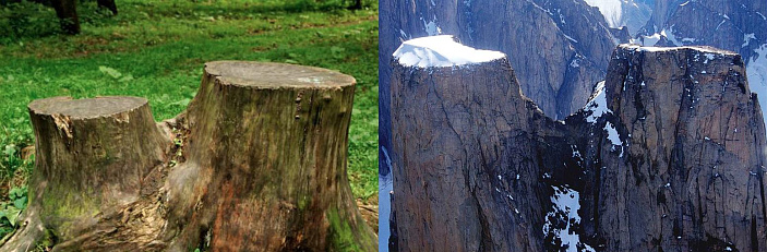 Дело в том, что столовые горы — это лишь единичные лучшие деревья, которые были выбраны для спила. Весь остальной единый лес планеты просто уложили взрывной волной. Мы рассмотрели пни с ровной площадкой, а кто-нибудь видел не спиленное дерево, а именно сломанное? Чтобы напомнить, приведем пример.