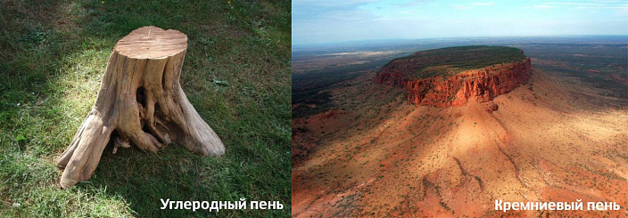 А теперь давайте представим природу фильма «Аватар», только помноженную по своему многообразию раз так в миллион. Всё это цвело и пахло, пока не прилетели плохие парни. Вначале они спилили несколько лучших деревьев, чтобы использовать их в качестве биологического топлива для генератора по изменению температуры и атмосферного давления внутри планеты. И это стало началом конца… Вслед за изменением климата окаменела вся флора, в отличии от фауны, которая ещё как-то спасалась в укрытиях. Итак, растительность уже не подавала признаков жизни и прежде, чем кремниевые организмы потеряли эластичность, планету накрыло ковровой бомбардировкой. Взрывная волна повалила всё, что имело корни. Давайте это наглядно рассмотрим на примере привычного нам углеродного дерева.