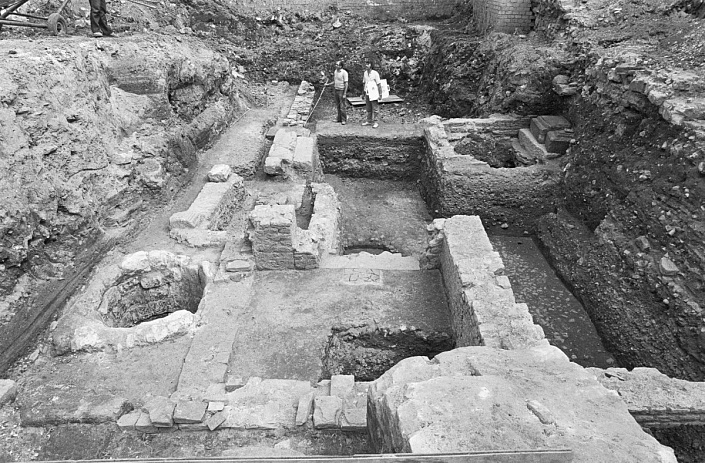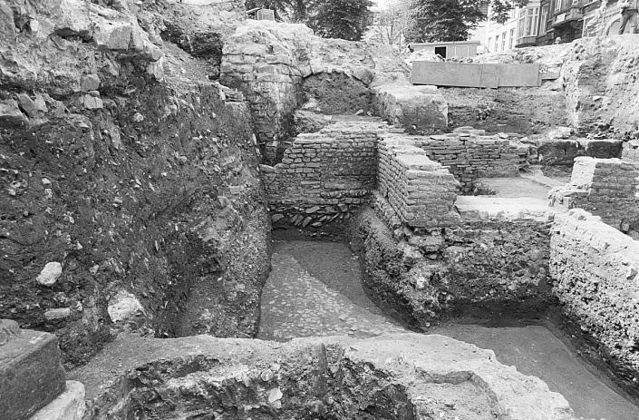 2. Просевшие в «культурный слой» на глубину до 4-х метров, и даже более, здания и сооружения, построенные ранее IX века. Причём везде «культурный слой» состоит, как правило, из однородного материала осадочного происхождения (песок и глина), под которым очень часто есть в наличии плодородный слой.