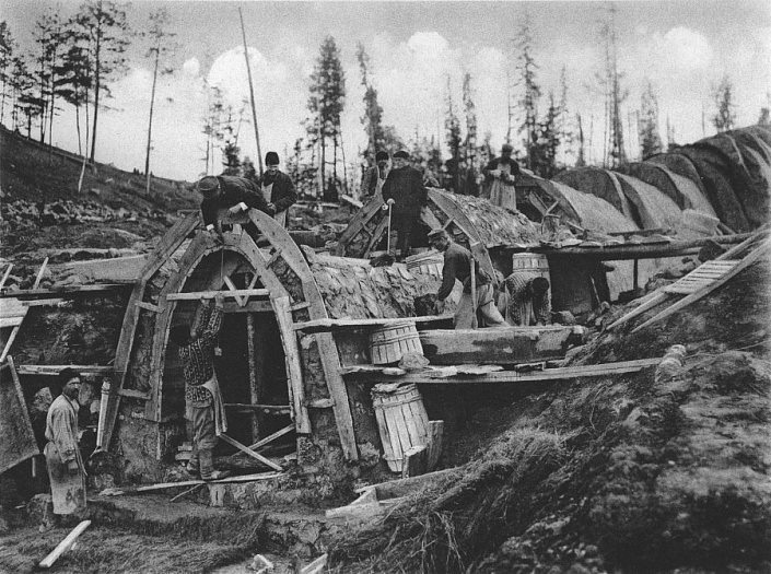 То есть за 20 лет (пусть даже 35–40 лет — средняя продолжительность жизни) от двух родителей уже было по 3–4 наследника, более того, уже нередко были и внуки к смерти первых родителей. Таким образом, прирост за 40 лет был не менее 100%. Но даже при 2-х процентном приросте расчёт в обратную сторону даёт не более 15–20 миллионов человек на всю Российскую Империю. Если ещё отсчитать 100 лет в прошлое, то и того порядка 0,5–1 миллиона на всю территорию Российской Империи. Отсюда возникает вопрос к возможностям строительства того, что описано выше, и следующий пункт.