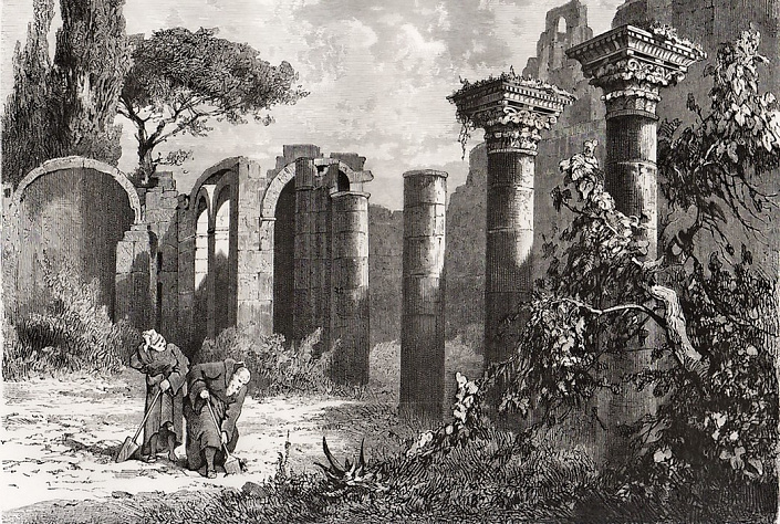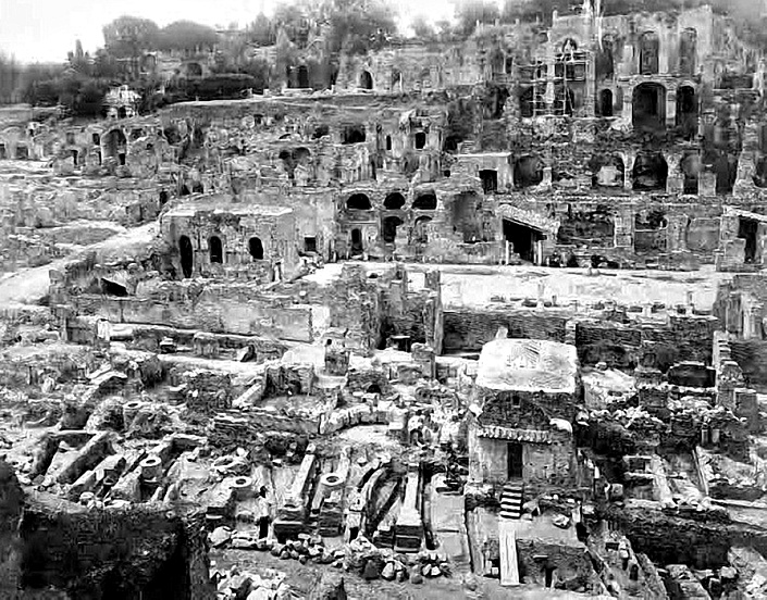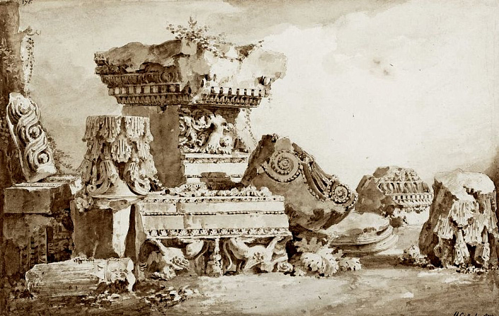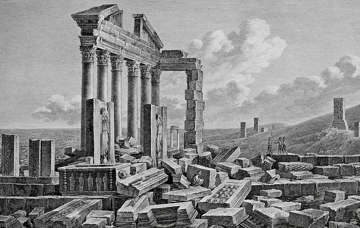 3. Разрушенные здания Греции, Италии, Египта, Франции, России, Америки, Африки, Австралии, Азии, построенные в том же античном стиле. Остатки которых в большом количестве откапывали археологи в недавнем прошлом и откапывают по сей день. Эти разрушения отражены в картинах «руинистов», запечатлевших на своих полотнах явно увиденные их собственными глазами руины всевозможных величественных зданий и сооружений городов.