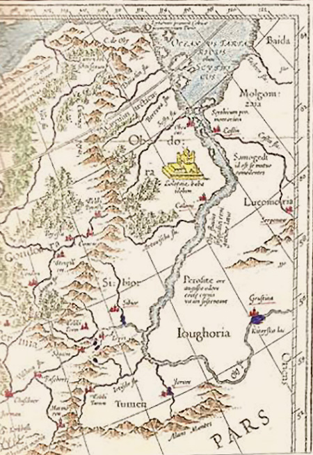 В XVI веке в Западной Европе был опубликован ряд географических карт, включавших территорию Западной Сибири. На этих картах, отражающих доермаково состояние Сибири, показаны сибирские города с названиями Грустина, Серпонов, Коссин, Тером. Фонетически и семантически эти названия близки русскому языку, особенно Серпонов – город сербский новый, Тером – попросту терем. Русскость этих городов подтверждается текстовым пояснением на карте И.Гондиуса, где рядом с Грустиной написано по латыни «urbs frigutus ad quality Tartari et Rutheni confluent», что означает «в этом холодном городе живут совместно татары и русские» или «в этот холодный город стекаются татары и русские».