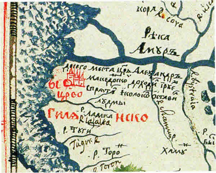 Известно, что придя в Сибирь, казаки столкнулись с тем, что названия рек, гор, болот и т.п. звучали в устах местных жителей как-то очень уж по-русски. На Западном Алтае и на севере Сибири местами встречались вообще одни только русские топонимы. Так, на реках Хете, Котуе и Хатанге на чертеже Семёна Ремезова «Поморие Туруханское» (конец XVII века) показаны одни лишь русские названия: Боярско, Романово, Медцово, Медведево, Сладково, Даурско, Ессейко, Жданово, Крестово и т.п. Разумеется, можно думать, что эти названия дали русские казаки-первопроходцы в XVII веке. Но вот ведь какая закавыка! Часть безусловно русских названий присутствует на Западноевропейских картах XVI века (карты Меркатора, Гондиуса, Герберштейна, Сансона и др): Лукоморье, Грустина, Серпонов, Тером и т.д. Карты эти были выкуплены в Москве у жадных до взяток чиновников, а составлялись они русскими людьми, не то первопроходцами, не то аборигенами. Важно, что эти названия доермаковы, что русские жили в Сибири до начала XVII века. И, следовательно, часть безупречно русских топонимов в Сибири являются доермаковыми.