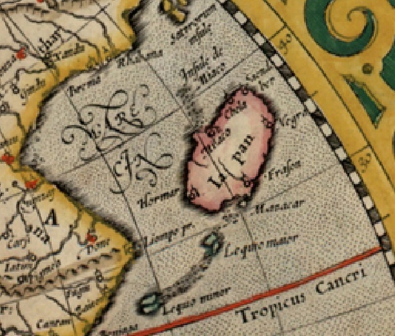 Возникает вполне резонный вопрос к официальной истории, которая оплачивается за счёт народа, — зачем нас обманывают? Как возможно, что 12 тыс. лет назад начал формироваться архипелаг (согласно вышеприведённой версии), если остров Япан был цельным островом ещё в XVI веке? А уже в XVII в. он был разорван (кора разошлась) и потерял большую часть островов архипелага? Может быть, мы о разных объектах тут рассуждаем, или свои исследования «уважаемые учёные» проводили в некой параллельной реальности? А, может быть, этой карте на самом деле более 12 тыс. лет (согласно официальной версии), если логически рассудить?