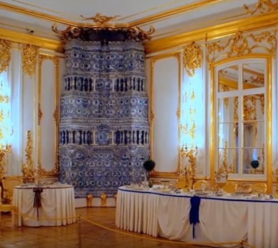 Во многих зданиях не была предусмотрена система отопления. По ряду признаков можно сделать вывод, что она встраивалась уже позже, видимо, по мере изменения климата. Печи и дымоходы в зданиях – явно не вписываются в интерьер, построены кое-как, на скорую руку. Это – Кавалерская Серебряная Столовая. На фото ясно видно, что печь не вписывается в интерьер.