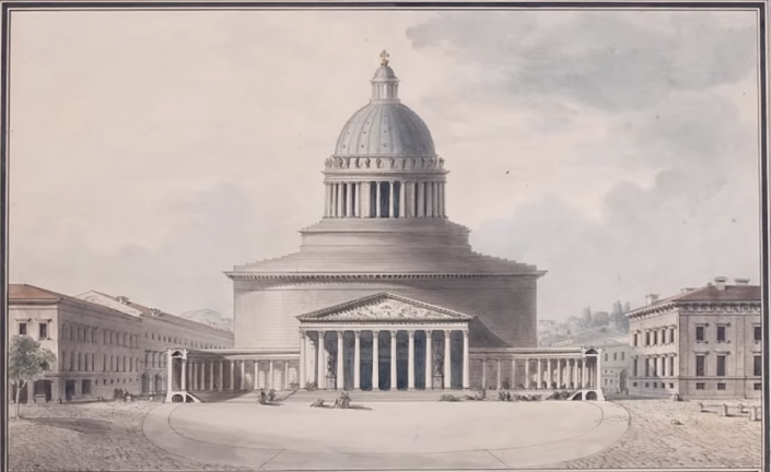 Однако вернёмся к официальной исторической версии, согласно которой Павел Первый во время путешествия по Европе вдохновился римской архитектурой и решил нечто подобное построить и у себя на родине. И наконец, в ноябре 1800-го года Павел Первый повелевает воздвигнуть на месте церкви Рождества Богородицы тот самый Казанский собор. Император объявляет конкурс на лучший проект православного храма.