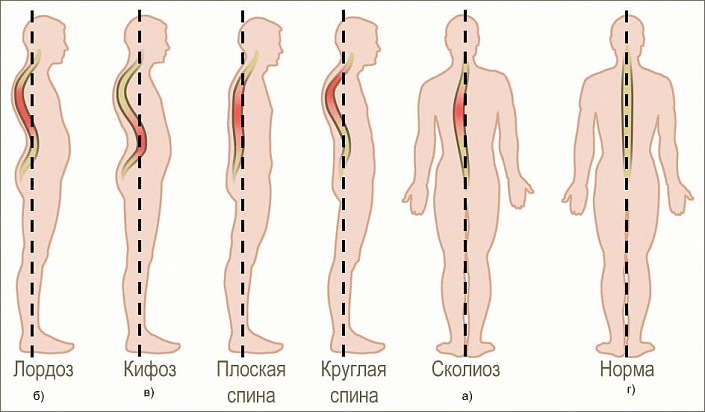 - Искривление позвоночника.