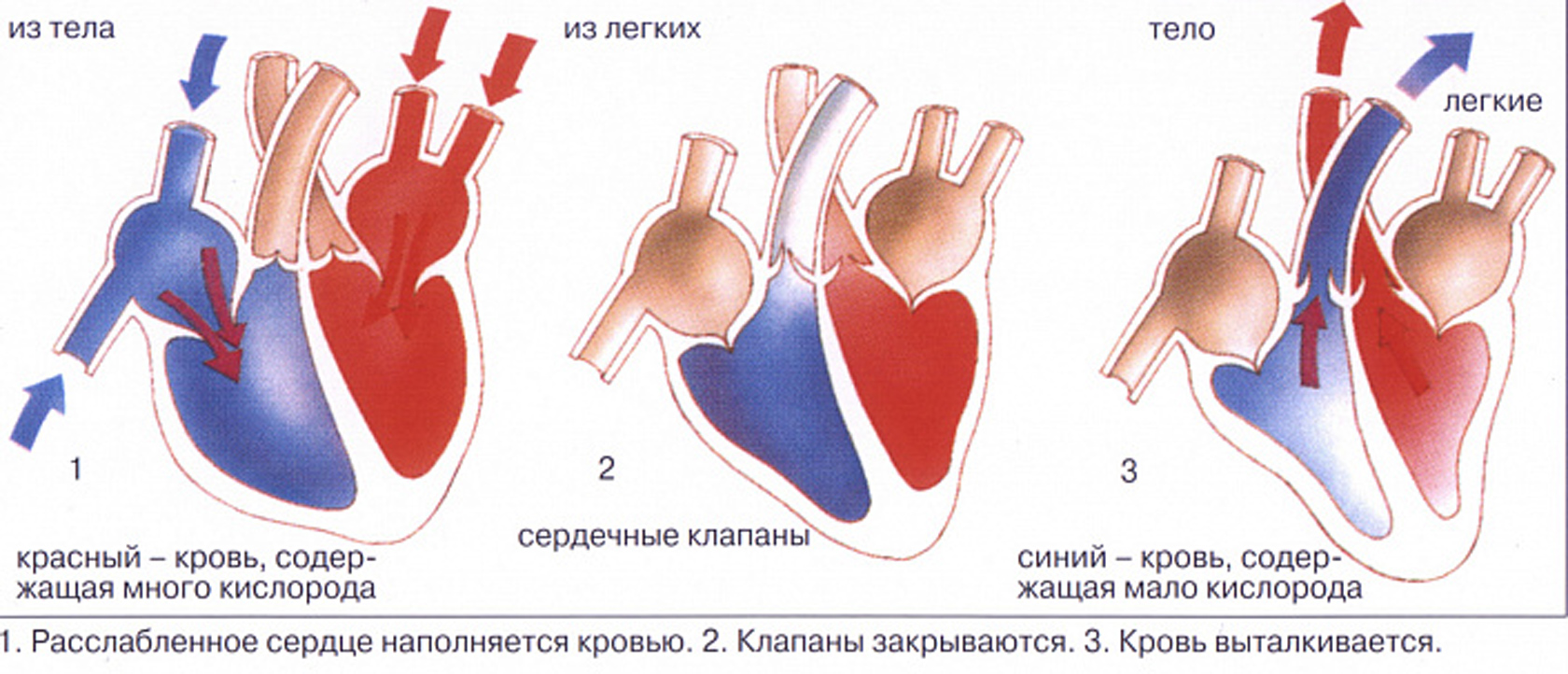 Чтобы непрерывно продвигать кровь по сосудам, сердце должно сокращаться. Исходя из стадии сокращения, выделяют 3 фазы сердечного цикла: