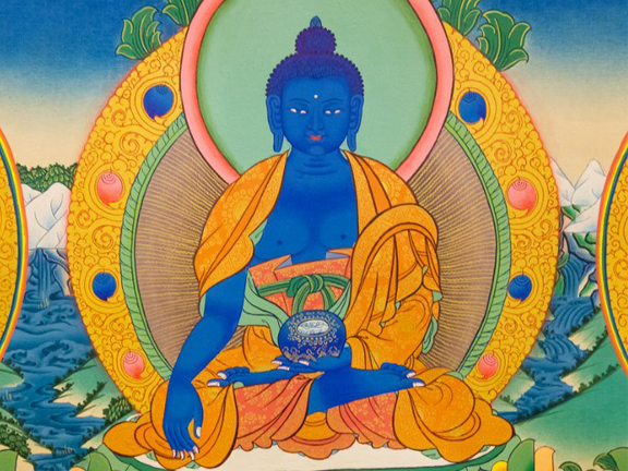 Первый из пяти будд — Акшобхья, Невозмутимый, — помещается в восточной точке мандалы. Его род носит имя Ваджра, поскольку сила, мощь и энергия перуна сочетаются в нём с блеском, чистотой и несокрушимостью алмаза.