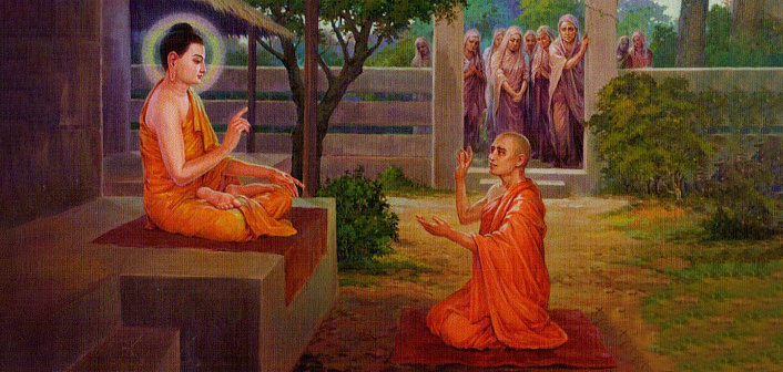 Когда один человек благодаря другому освободился от сомнений по отношению к страданию, по отношению к происхождению страдания, по отношению к прекращению страдания, и по отношению к пути, ведущему к прекращению страдания, то, я говорю тебе, непросто будет первому отплатить последнему почитанием его… подношением ему одеяний, еды, жилищ, необходимых для лечения вещей.