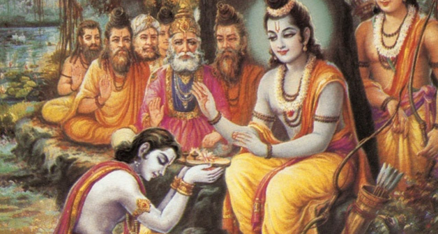 Тогда министры упали ему в ноги и стали плакать. Мудрый Рама не печалился и не плакал, невозможно было заметить даже малейшего изменения на его лице.