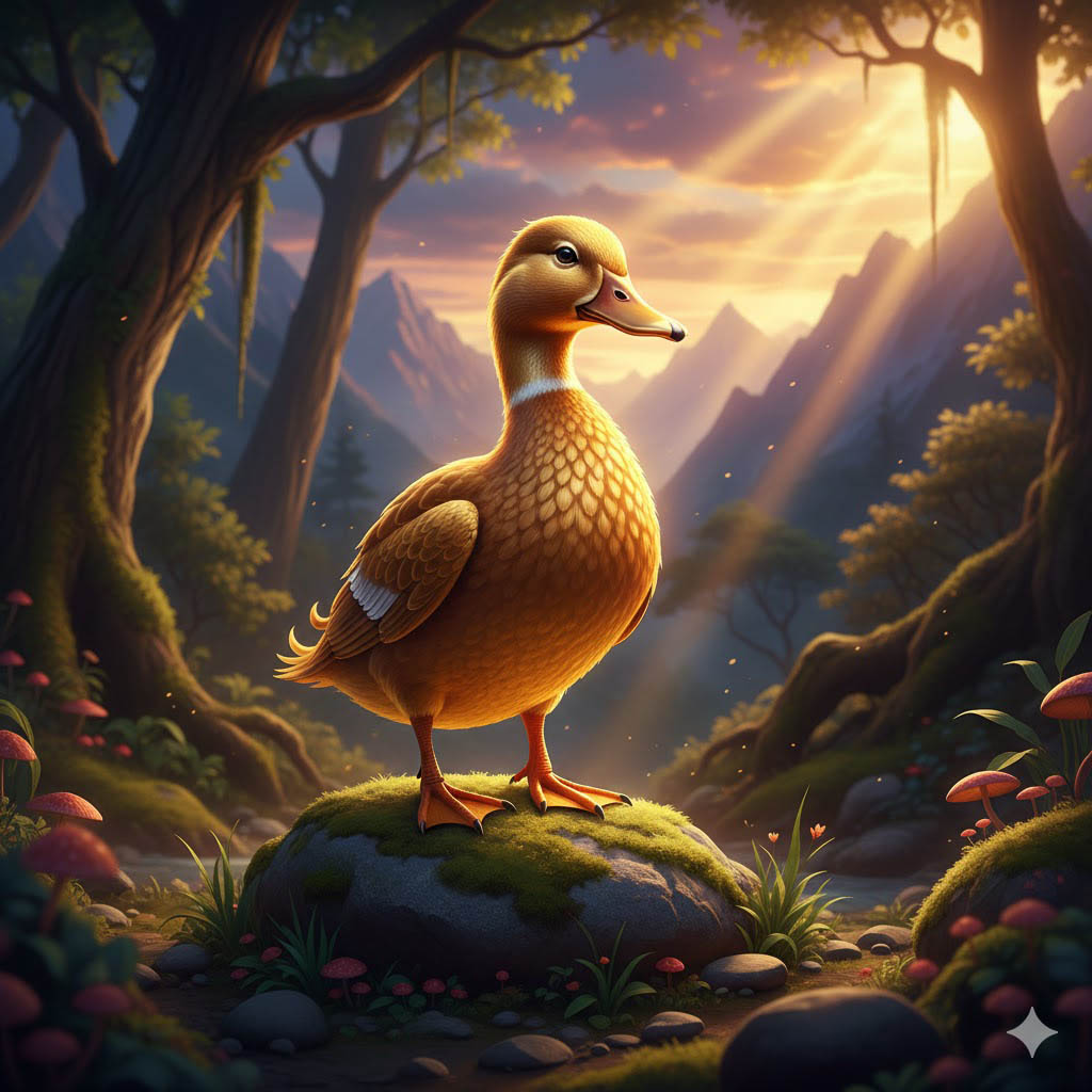 «Некогда, в стародавние времена, четвероногие выбрали царём льва, рыбы – рыбу Анаду, птицы – златопёрого селезня. А у златопёрого селезня была дочь-красавица, молодая утица. И пообещал он ей исполнить любое желание. Она пожелала выбрать себе мужа, какого захочет. Исполняя обещание, царь-селезень призвал всех птиц к себе в Гималаи. Гуси, павлины и прочие птицы, слетясь, уселись на огромной скале. Царь-селезень послал за дочерью, сказав: «Пусть придёт и выберет себе какого захочет супруга».