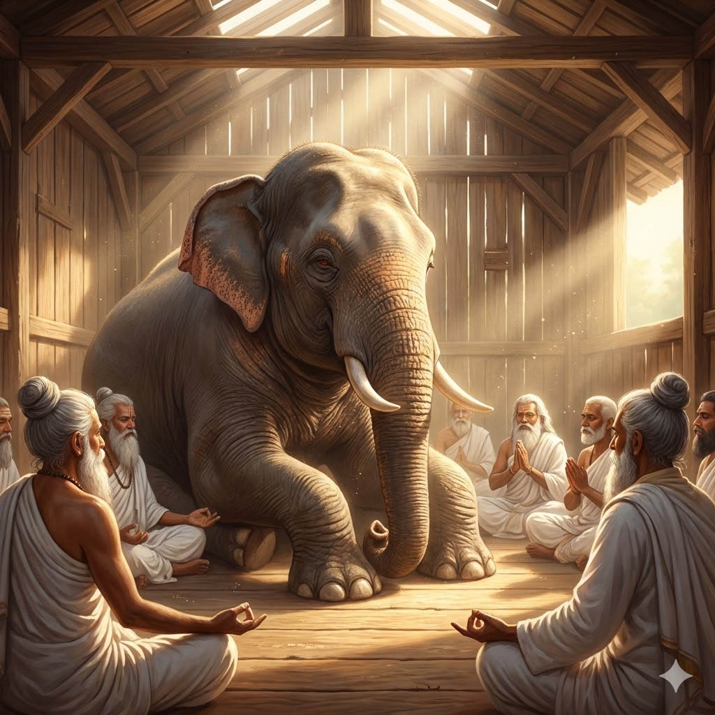 превосходный [слон] утвердился в добродетели».