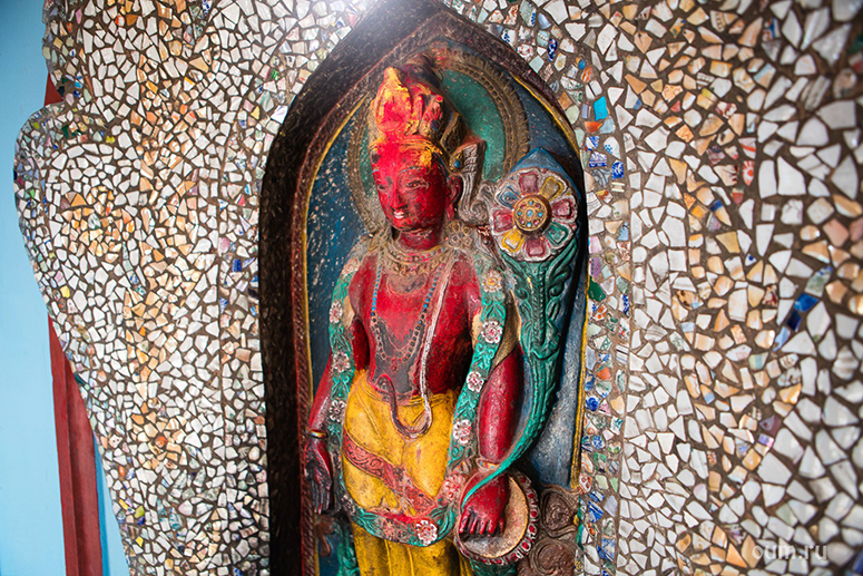Святилище Ваджрайогини находится на верхнем уровне здания. В нижнем, называемом Гандакоти, расположена статуя Авалокитешвары. Слева от него — жёлтая Тара, а справа — Будда Шакьямуни в окружении двух его главных учеников.
