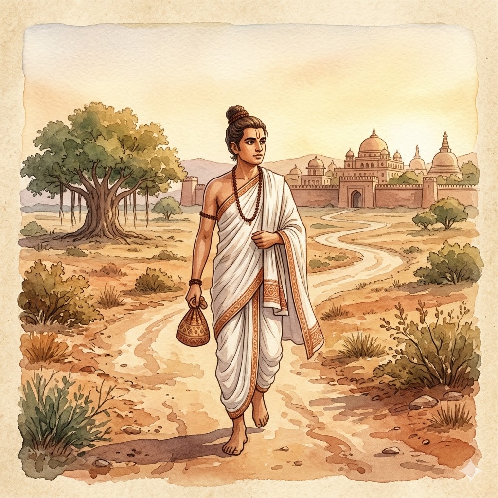 "Во времена стародавние, когда на бенаресском троне восседал Брахмадатта, бодхисаттва возродился в городе Таккасиле, что в царстве Гандхара, в семье брахмана. Ко времени совершеннолетия бодхисаттва достиг уже такого совершенства в знании трёх вед, всех наук, искусств и ремёсел, что слава его как наставника распространилась по всему миру.