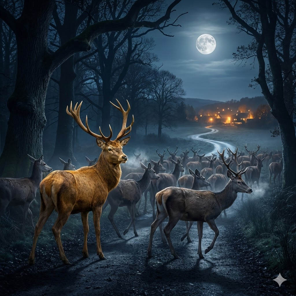 В царстве Магадха, перед жатвой, когда тучнеют хлеба, олени подвергаются большой опасности в лесу: чтобы уберечь от них хлеба, люди роют ямы, устраивают западни, устанавливают самострелы, ставят капканы и силки, и многие олени от этого гибнут.
