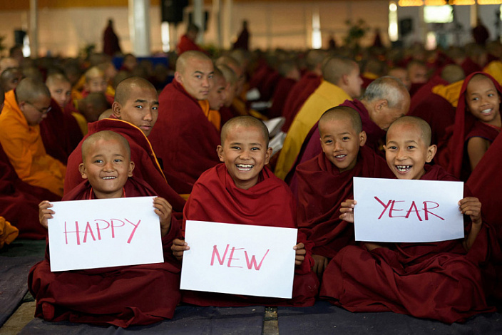 Новый год в буддийской традиции отмечают в первое новолуние весны. Из-за отличий в летоисчислениях разных школ Новый год в таких странах, как Монголия, Тибет, Калмыкия, встречают в разные сроки.