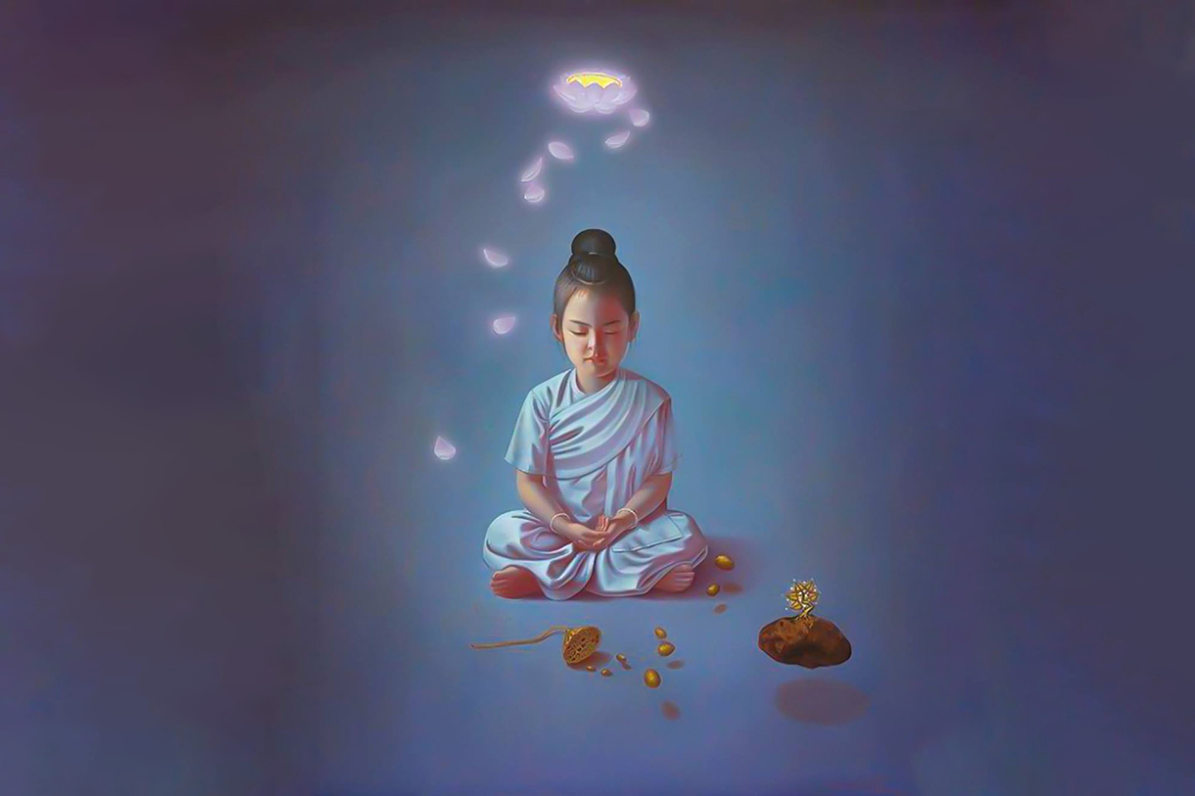 Будда по достопамятному случаю прибыл в город Шравасти, где остановился, как у него было заведено в роще Джетавана. Там в зале для медитации он провёл собеседование с двенадцатью сотнями своих главных учеников. Все они были великими архатами, свободными от скверны, полностью освободившиеся от чувственных привязанностей и отвращений.