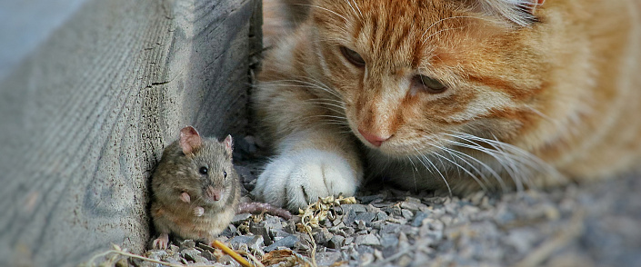 «Надо же, какая благородная мышка!» — подумала кошка и, отпустив её, обо всём рассказала хозяйке.