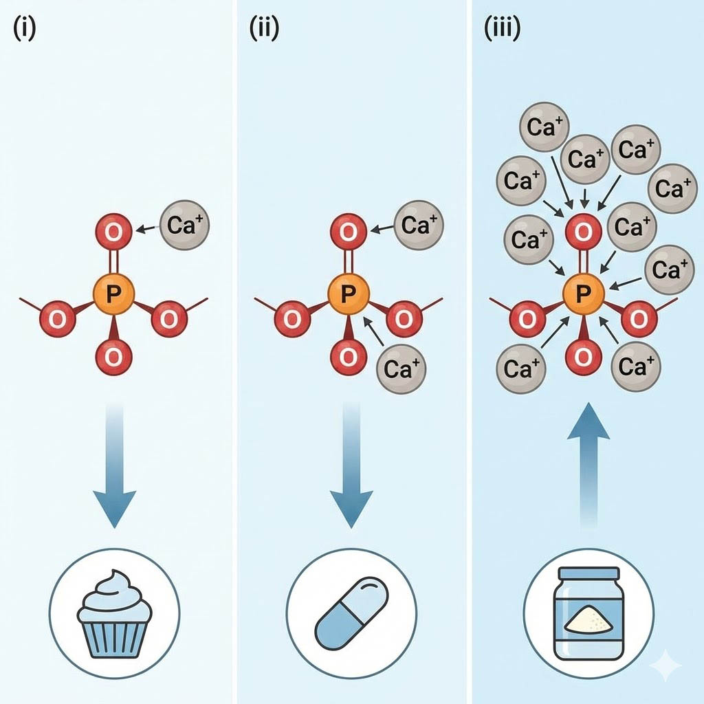 | Физиологическое воздействие | Источник кальция и фосфора | Поставляет только фосфор (и натрий/калий), без кальция |