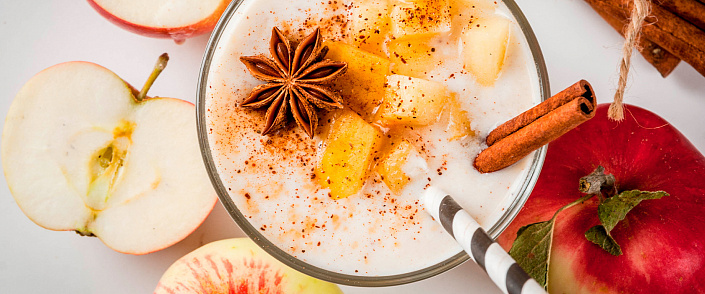 Смузи Яблочно-банановый смузи Состав: Яблоки - 1,5 кг (зелёные) Бананы - 2 шт. (спелые) Вода - 1 ст. Приготовление: Отжать свежий яблочный сок. Взбить в блендере сок, бананы и теплую воду. Подавать сразу же. Славной трапезы! Ом