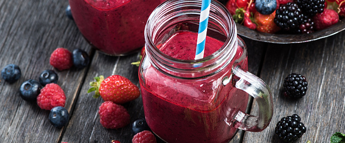 Смузи Ягодный смузи Состав: Малина - 1/2 ст. Вишня - 1/2 ст. Красная смородина - 1/4 ст. Чёрная смородина - 1/4 ст. Немного мяты Вода 1 ст. Приготовление: Взбить в блендере до однородной массы. Украсить малиной. Славной трапезы! Ом