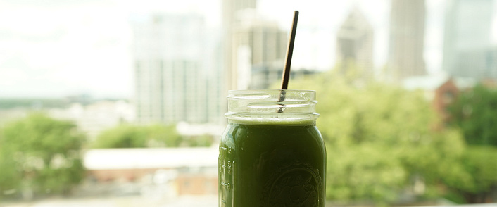 Петрушку промыть, из фиников удалить косточки. В мощном блендере взбить все ингредиенты до однородного состояния. Благодаря сочетанию бананов, фиников и кокосового молока у коктейля получается насыщенный тропический вкус.