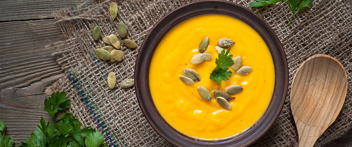 Суп при подаче можно украсить тыквенными семечками или кунжутом. Вкус супа завит от вкуса тыквы, выбирайте сочные сладкие сорта. При желании к суп можно добавить нарезанный тофу.