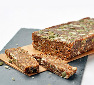 Смешать в блендере до состояния крошки (но не пасты) кешью, овес, семена льна и специи. Высыпать из блендера. Затем взбить финики до состояния густой пасты. Смешать в блендере все ингредиенты вместе до получения однородной массы. Смесь должна быть липкой, но не жидкой. Добавить в нее чайную ложку воды, если слишком сухая и немного овсянки, если слишком липкая. Выложить массу в форму. Разровнять, утрамбовать, убрать в холодильник на пару часов и нарезать на порционные куски. Хранить в холодильнике.