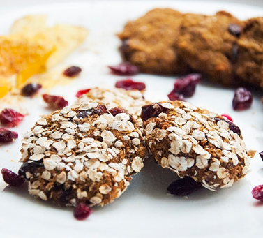 Измельчить семя льна на кофемолке, залить стаканом воды (можно горячей), дать настояться минут 5-10. Имбирь натереть на мелкой терке, также подготовить цедру. Смешать все ингридиенты, слепить печенья, обвалять в овсяных хлопьях (по желанию). Выпекать 20-40 мин на 180 градусах. Если хотите потверже, выпекайте дольше.