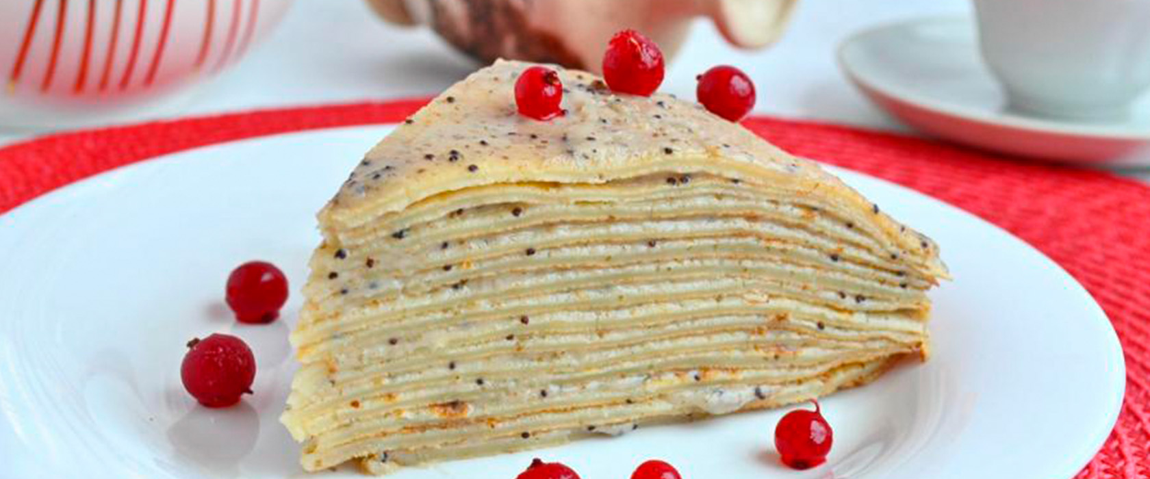 Рецепт восхитительного блинного торта, который выглядит изумительно (на вид как "Черный лес") и полностью вегетарианский.