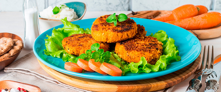 Морковь натереть или мелко порезать, залить водой и протушить в течение 15 минут на среднем огне. Затем добавить к ней все остальные ингредиенты, хорошо перемешать и остудить. Мокрыми руками сформировать из массы котлетки любой формы. Выложить их на противень, застеленный пергаментом, и запечь в духовке в течение 20 минут при 200 градусах. На стол подавать в теплом или охлажденном виде.