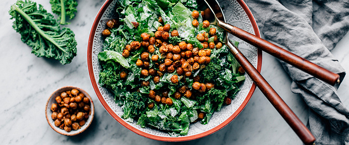 Салаты мелко порвать. Добавить нут, соус и сухарики.