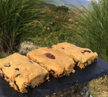 Финики обдать горячей водой, снять жесткую кожицу и удалить косточки. Муку просеять, смешать с содой (погасив её уксусом), солью, финиками и маслом в крошку. Удобно делать это с помощью кухонного комбайна. Добавить орехи (можно так же изюм и курагу), смешать, раскатать тесто толщиной 1 см, нарезать квадратами, выложить на противень и запекать 15 мин. при температуре 220 С. Если необходимо, температуру убавить до 180 С.