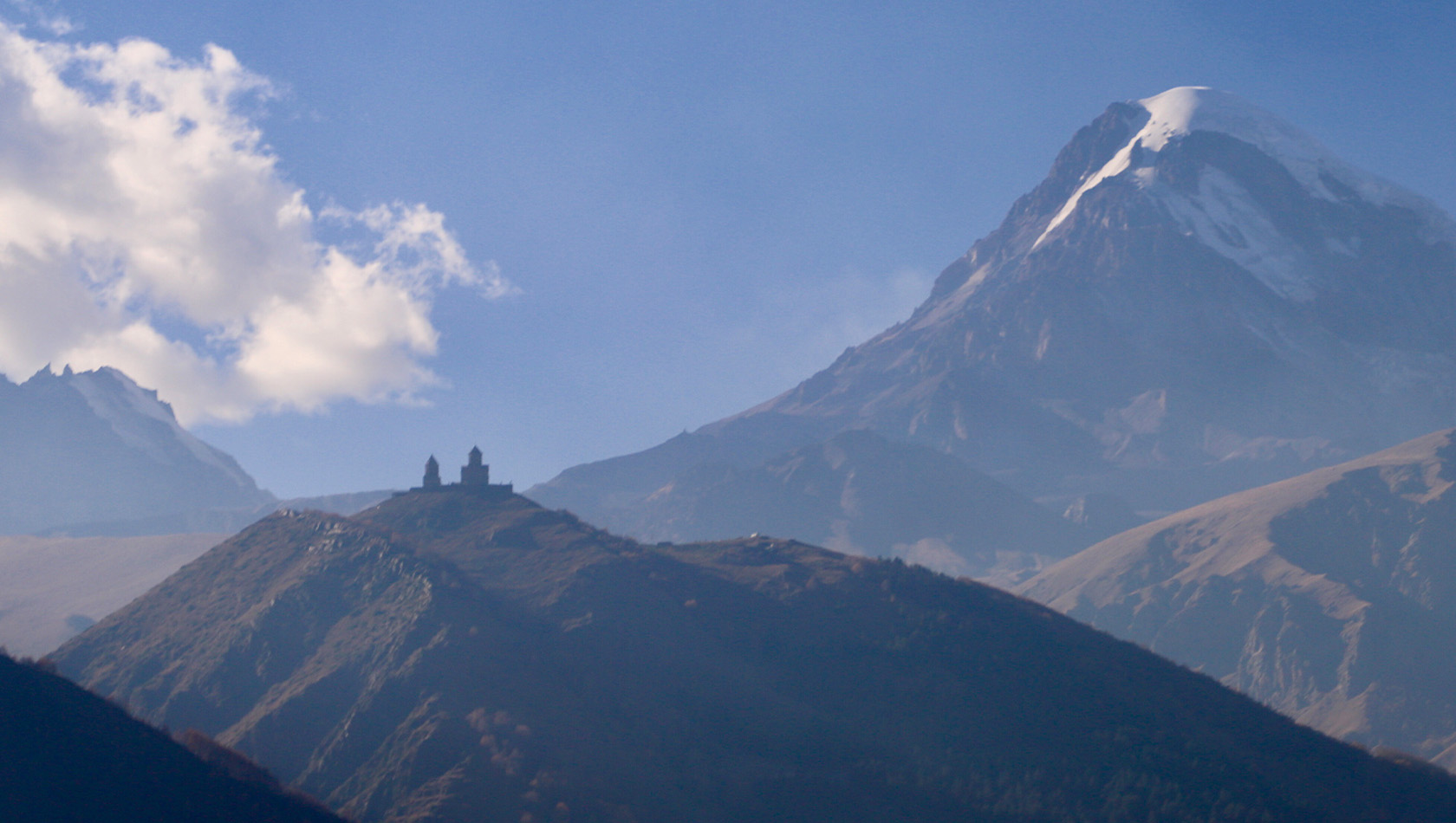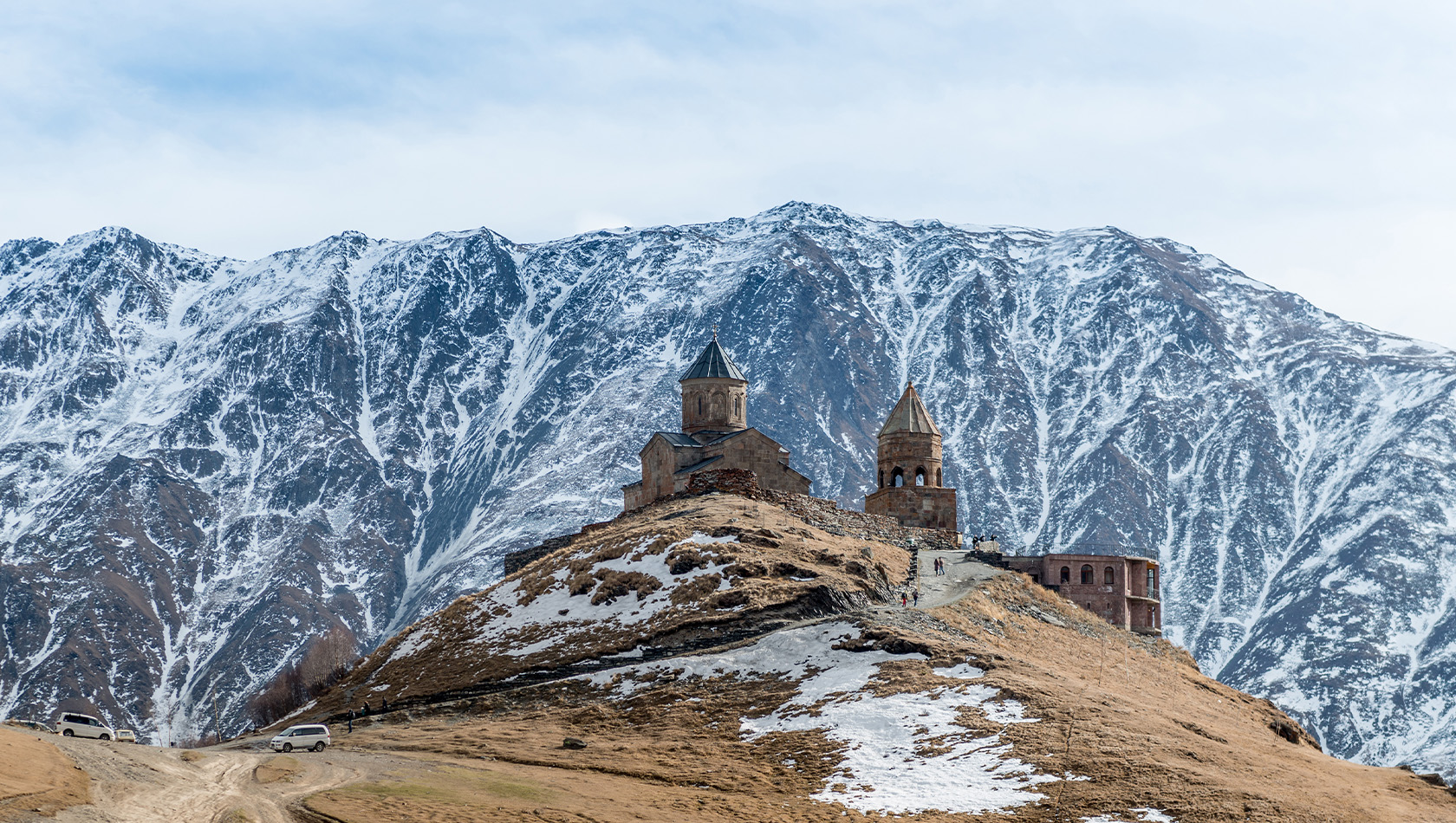 Мы начнем наше путешествие с комфортной поездки на машине к подножию горы Казбек и к Троицкой церкви.