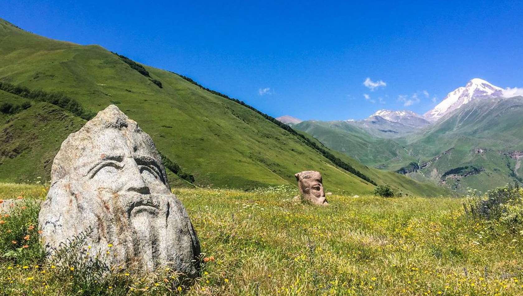 По пути в Джуту обязательно остановимся в селе Сно. Это место рождения Католикоса-Патриарха всея Грузии Илии II, что придает ему особое значение. Но Сно интересно не только своей историей, но и современным искусством. Здесь мы увидим необычный арт-объект – скульптуры гигантских каменных голов, которые стали настоящей визитной карточкой этого места.