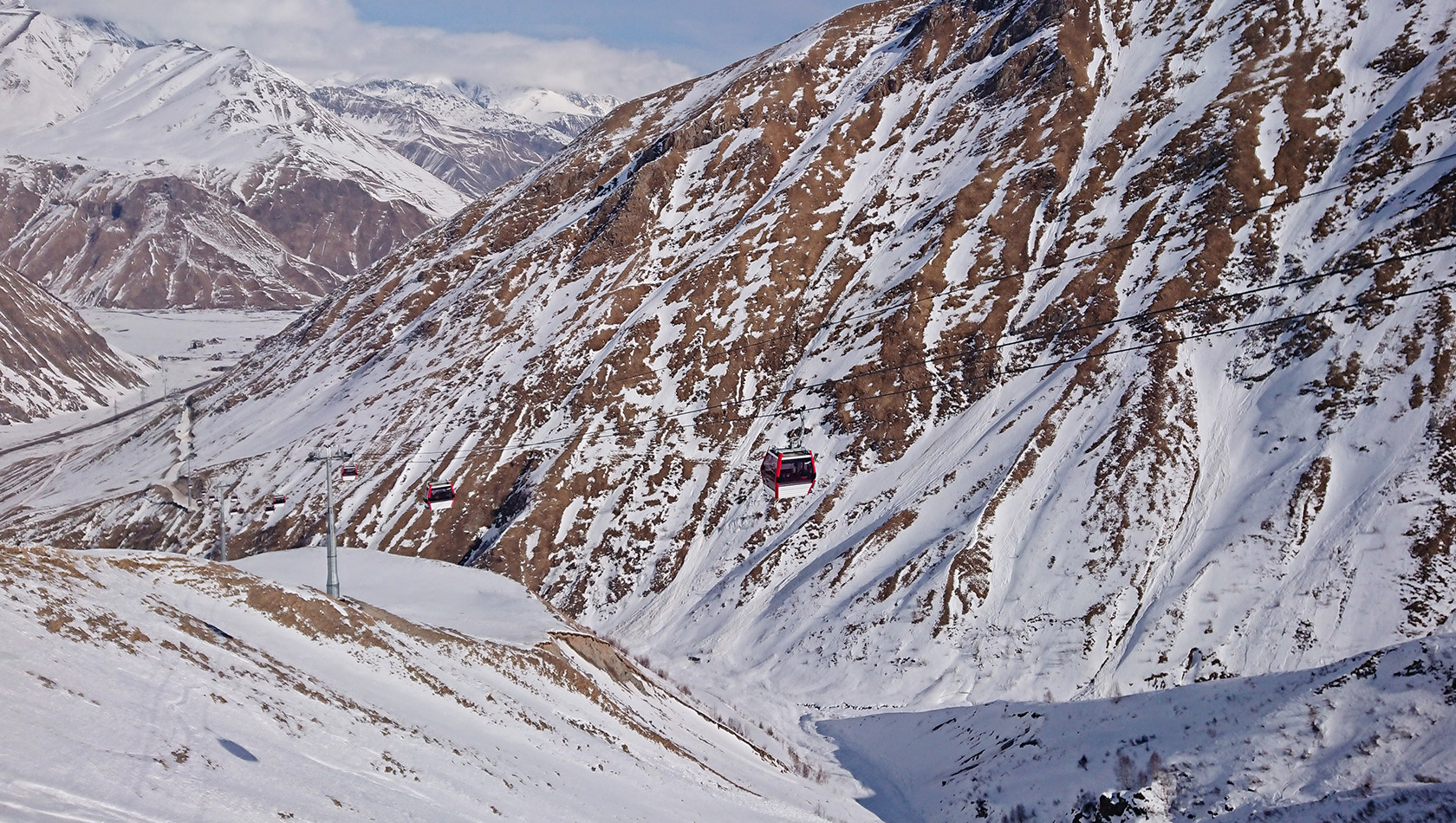 Доехав до поселка Коби, мы пересаживаемся на подъемник, соединяющий поселок Коби с горнолыжным курортом Гудаури и отправляемся в захватывающее путешествие!